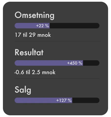 # Økt resultat fra -1mill til + 5,5 millioner (+450%)